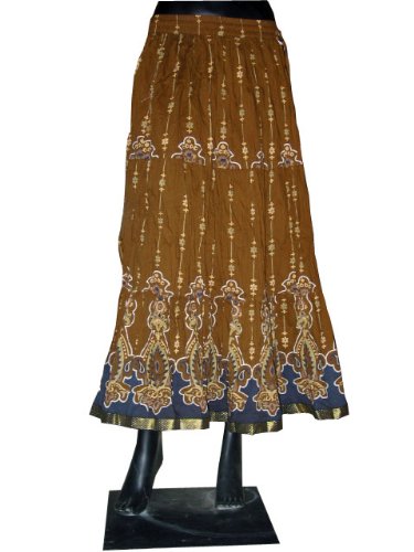 "Buy Hippie Boho Floral Printed Brown Tiered Cotton Skirt for Women" Overview