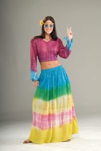 This Hippie Tye Dye Skirt will add some real color to your outfit and is perfect for an adult hippie costume. This tie dye skirt features an attached under slip and goes great with a tye dye tank top or just a plain white top. This skirt is the perfect addition to your 70's adult costume so you can join the hippie generation.You will not be disappointed with