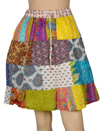 "Buy Indian Gypsy Hippie Cotton Short Mini Skirt Dress with Patch Work" Overview