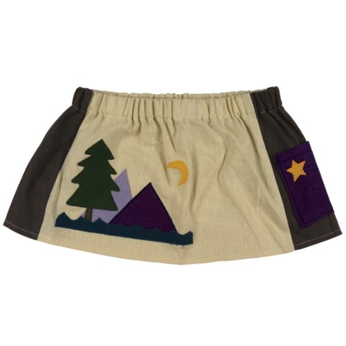 Little Hippie brings this adorable 100% cotton, elastic waist youth skirt featuring a peaceful nature camping scene embroidered in felt patches, with a star-studded pocket on the left. A cute and comfortable skirt, perfect for any little lover of the outdoors!You will not be disappointed with