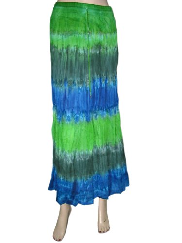 Womens Bohemian Retro Gypsy Tie Dye Blue Green Hippie Crinkle Cotton Long Tie Dye Skirt Review