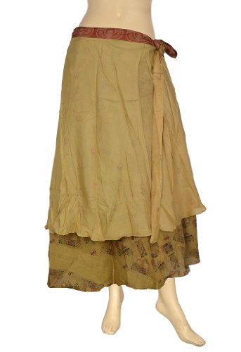 Shiny Silk Wrap Around Skirt Made By Recycled Printed Silk Sari with Umbrella Cut Two Layer, Long & Open Waist SKW01165 Review