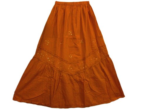 "Buy Womens Hippie Boho Long Skirt Orange Sequin Beaded Embroidered Gypsy Cotton Skirts" Overview