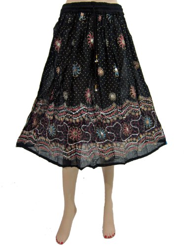 "Buy Hippie Boho Fashion Sequin Skirt Floral Print Cool Black 28" Medium Gypsy Skirts" Overview