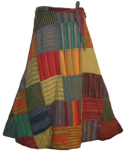 Beautiful vibrant hippie gypsy patch work cotton wrap skirt is just the way to spice up your wardrobe. Gorgeous Renaissance design and very feminine & timeless. The fabric is 100% cotton. It features the multiple color patches which fits from Small to XL and 1XL to 4XL sizes. There are two sizes available in this wrap skirt so please select the appropriate size. The prices is slightly different because of the fabric content for each sizes. The measurement of the skirt(S to XL) - width = 49 inches; Length = 37 inches; Size: 1XL - 4XL Width = 60 inches, Length = 39 inches. It has a 14 - 16 inches rope to tie at the back. It is very comfortable and fit nicely. Made in Nepal exclusively for Agan Traders Customers.You will not be disappointed with