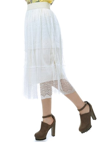 "Buy Anna-Kaci Small Fit White Bohemian Feminine Lace Mid-Calf Elastic Band Skirt" Overview