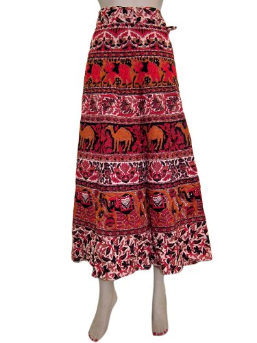 Red India Wrap Around Skirt Hippie Boho Camel Elephant Print Cotton Wrap Skirt for Women 34" Review