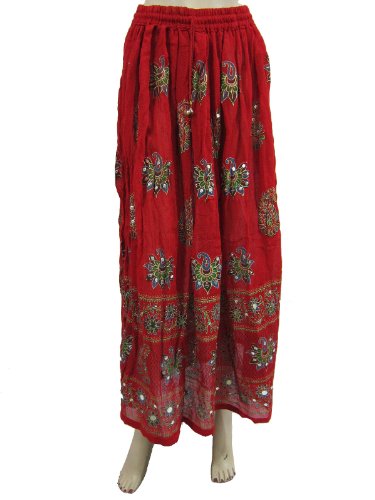 "Buy Womens Long Skirts Dcrapechic Floral Sequin Beaded Red Bohemian Skirt 37"" Overview